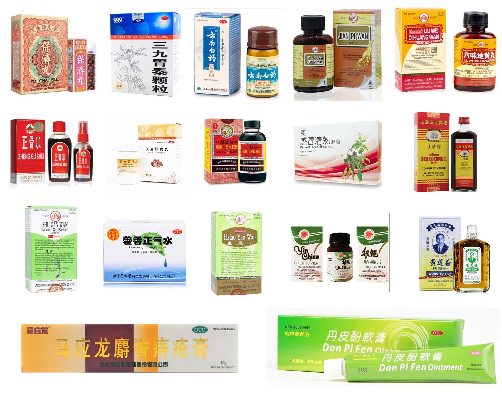 We have more than 100 kinds of Chinese herb formulas in stock. They are in pills, tables, capsules, cream, or ointment form. We can also make customized formulas (loose leaf or powder form) for TCM practitioners.